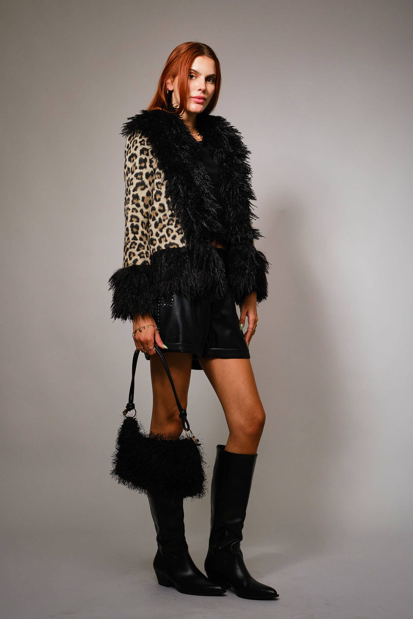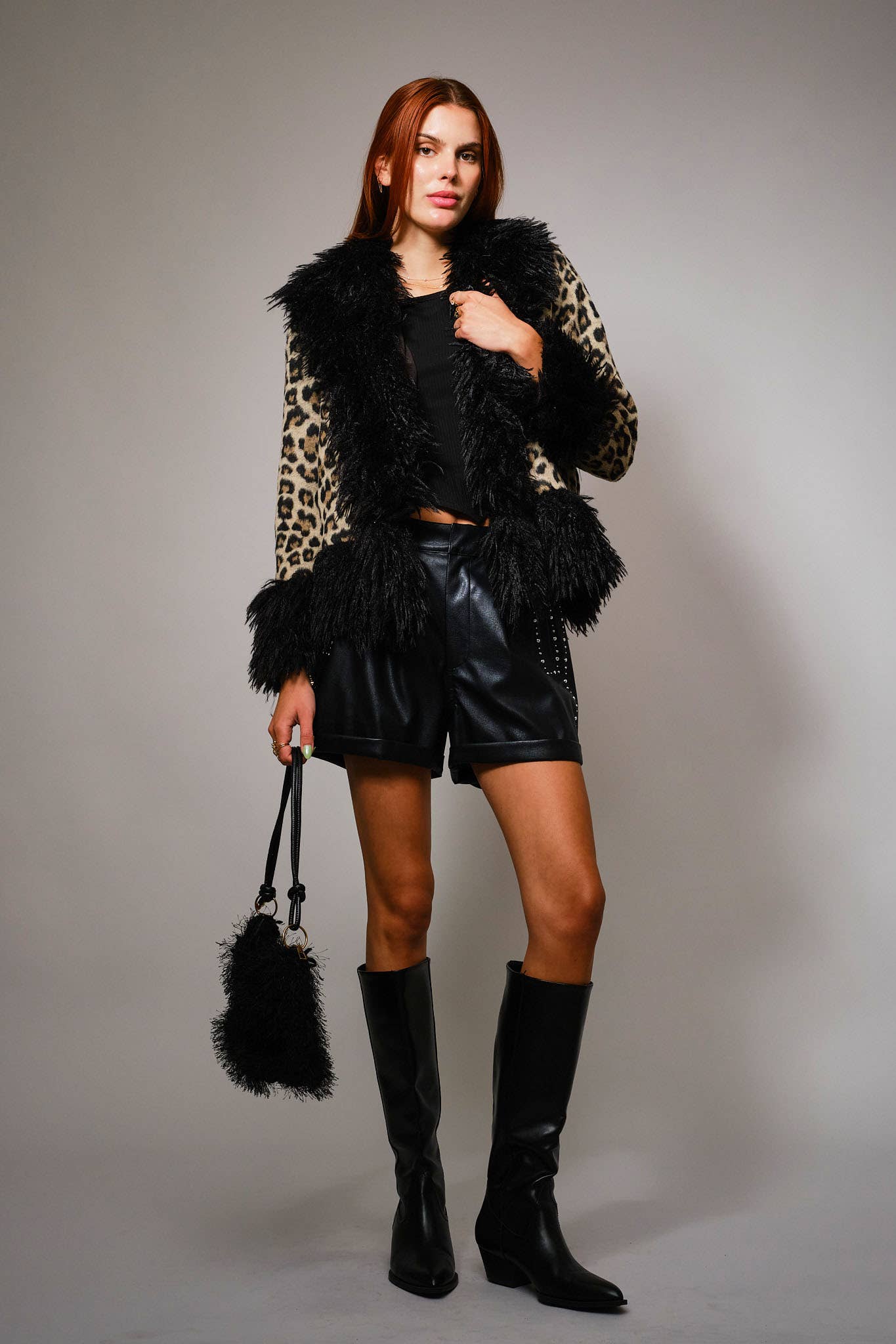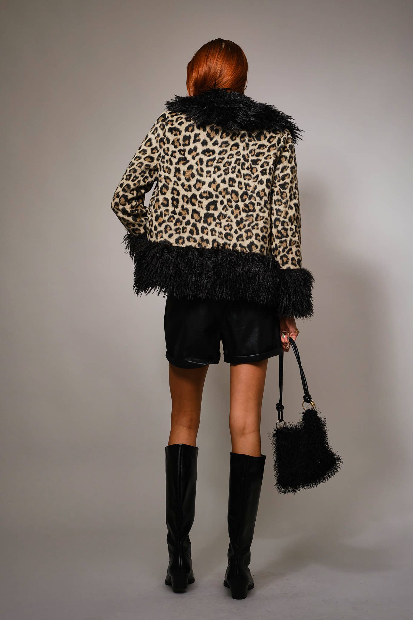 37178J Leopard Print Faux Fur Trim Coat: LEOPARD