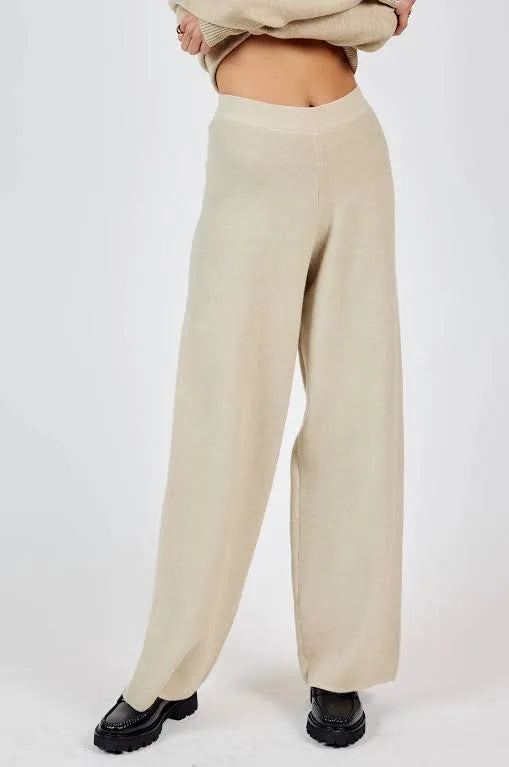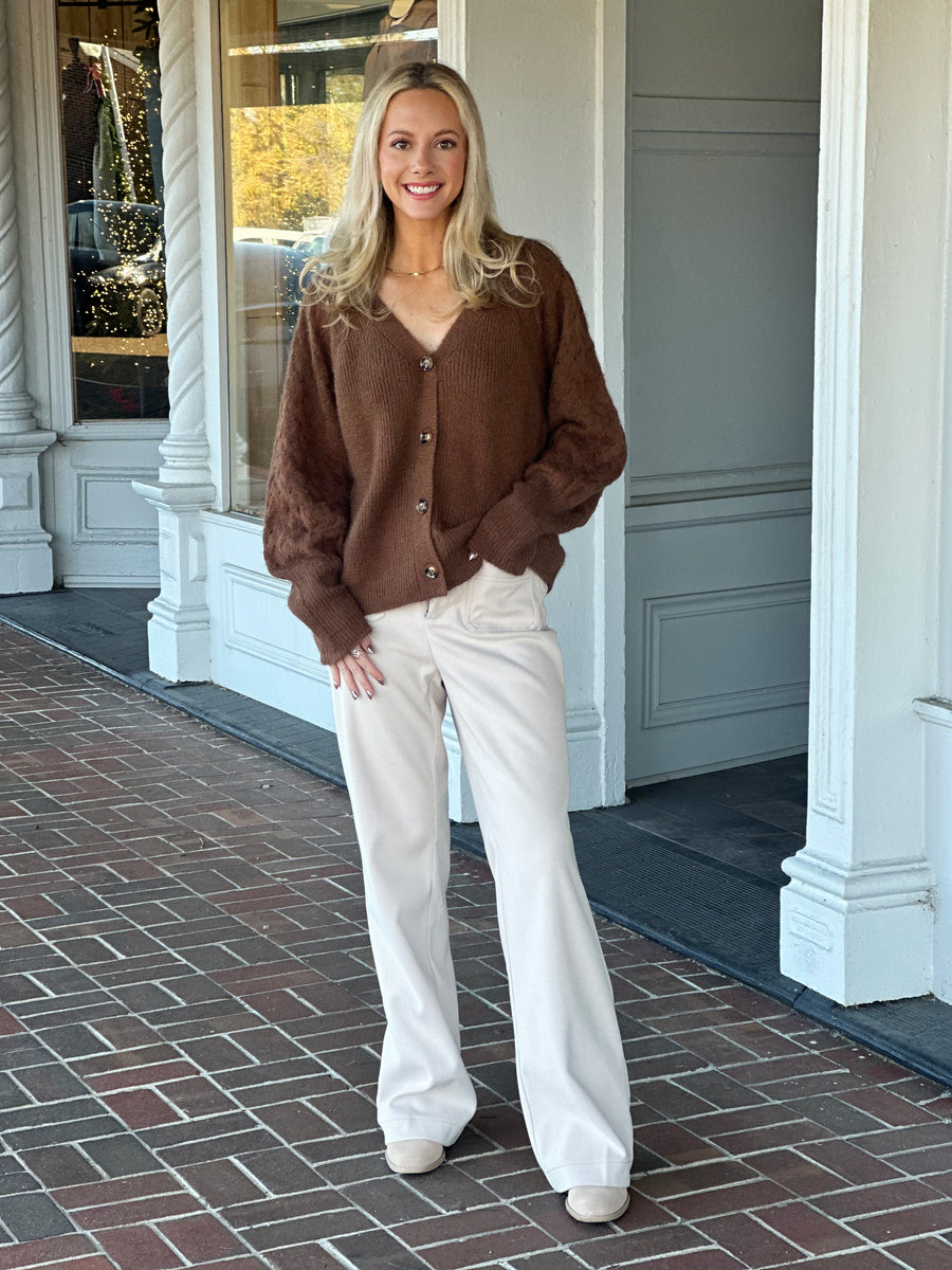 ROXANNE SOLID BROWN WIDE LEG PANT