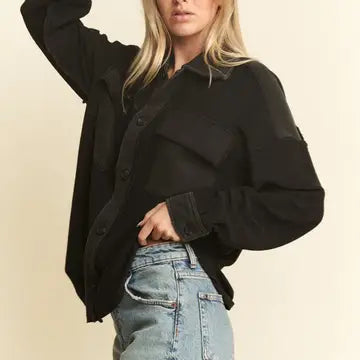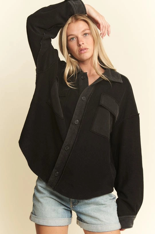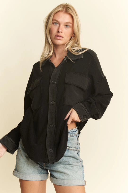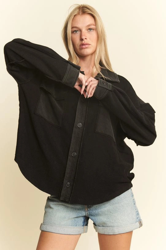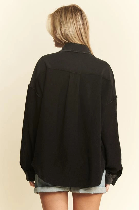 BLACK MINERAL WASH COLLARED BUTTON DOWN