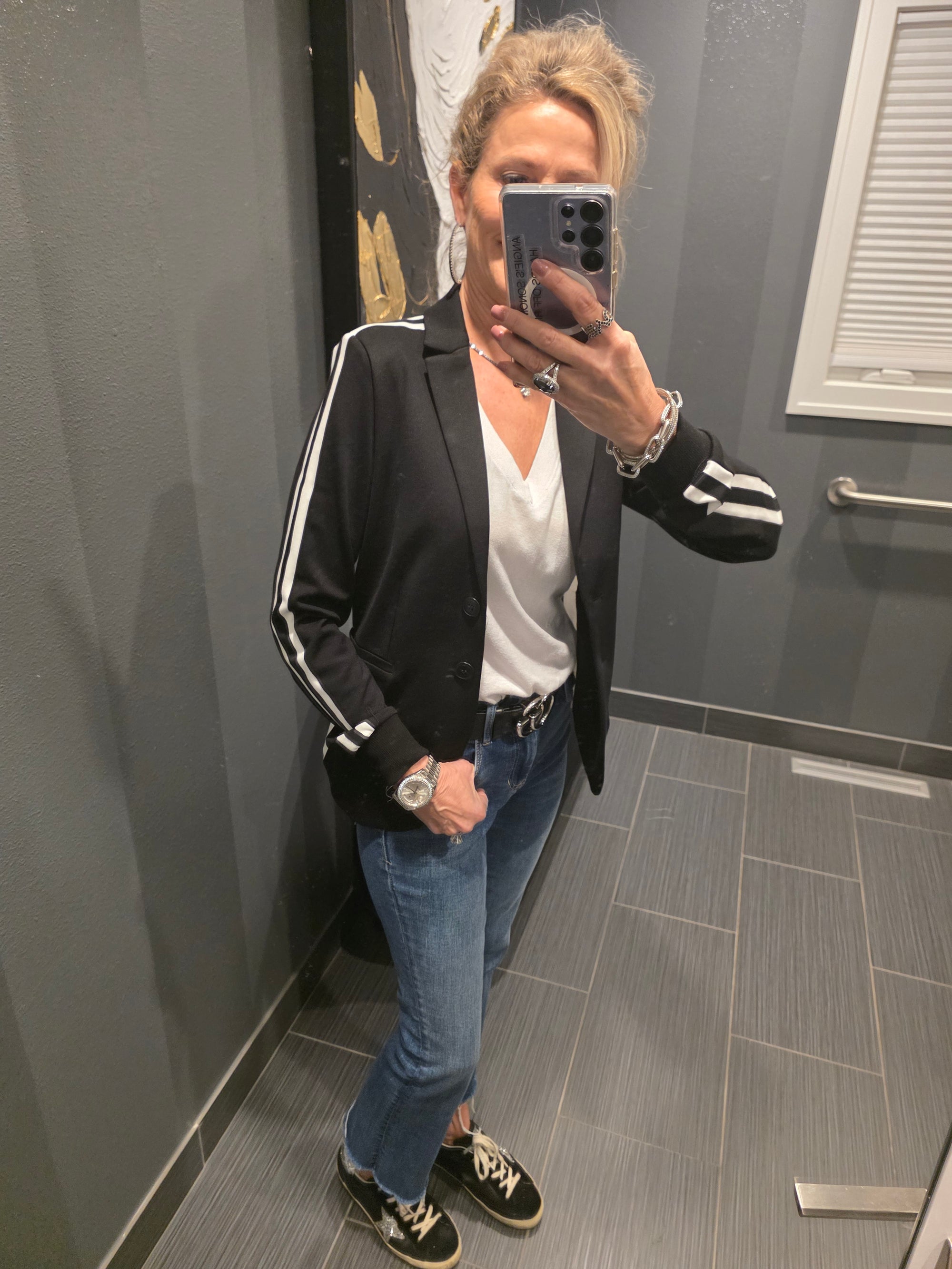 BLACK BLAZER W/WHITE STRIPE SLV DETAIL