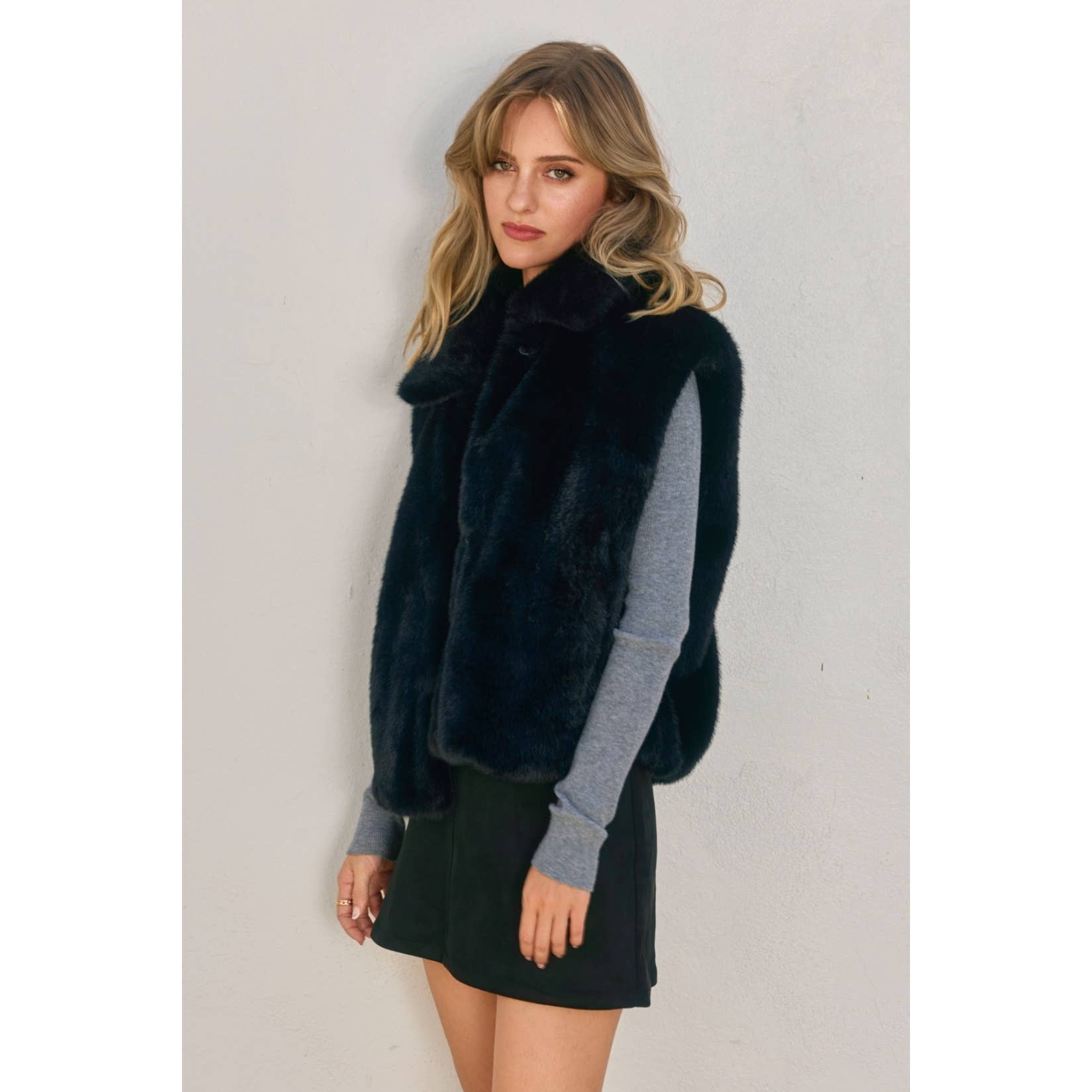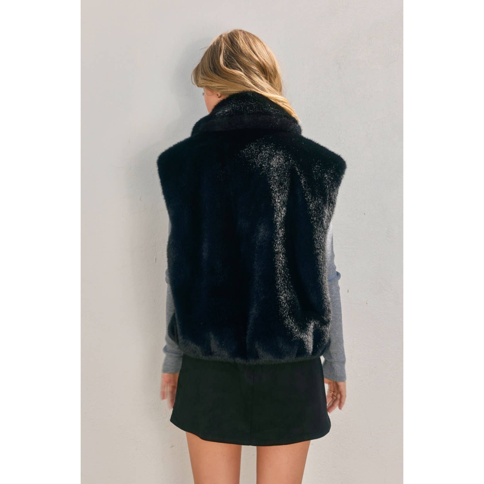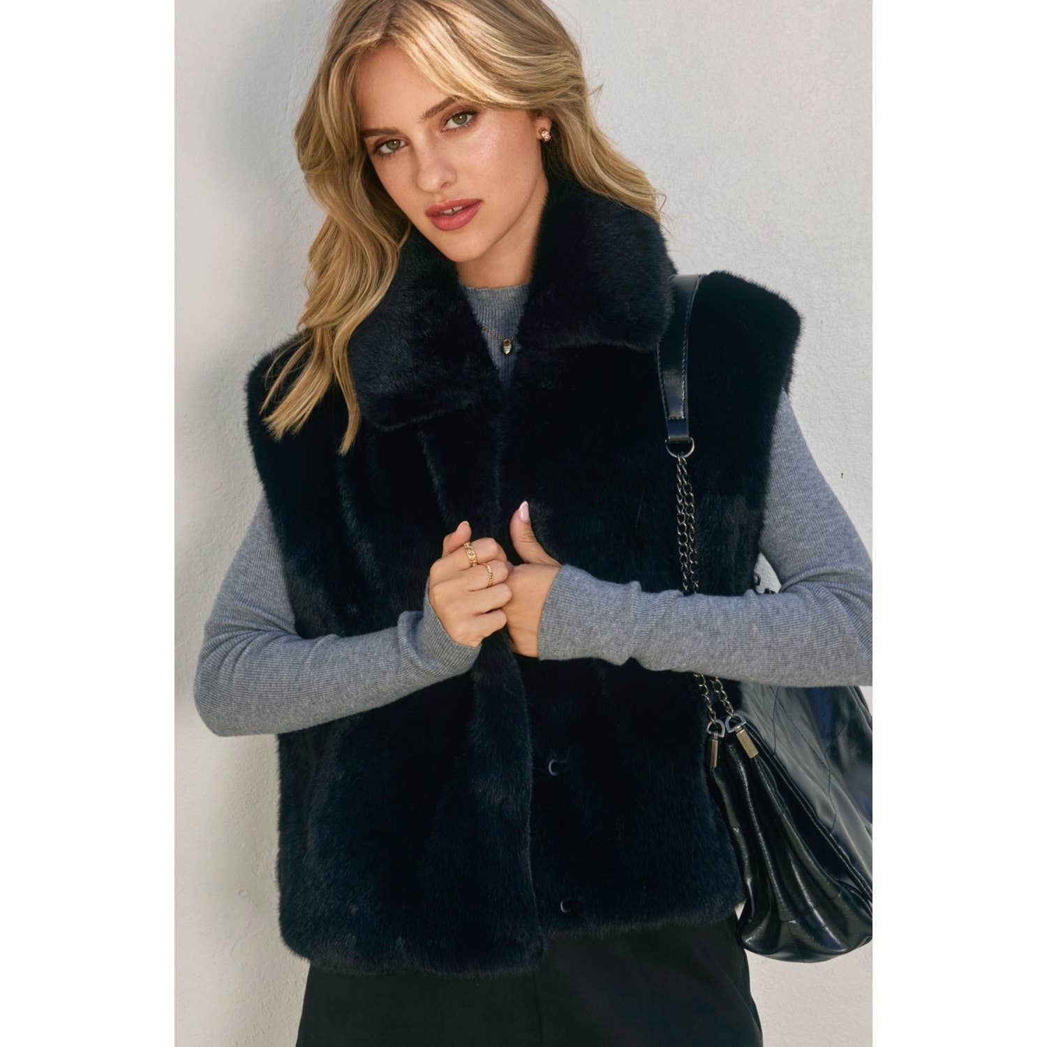 Wind Whispers Faux Fur Collared Vest: BLACK / S-M-L(2-2-2)