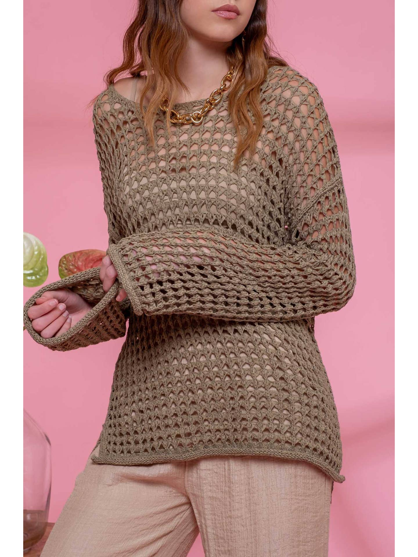 V-neck crochet woven roomy fit cardigan top:NATURAL