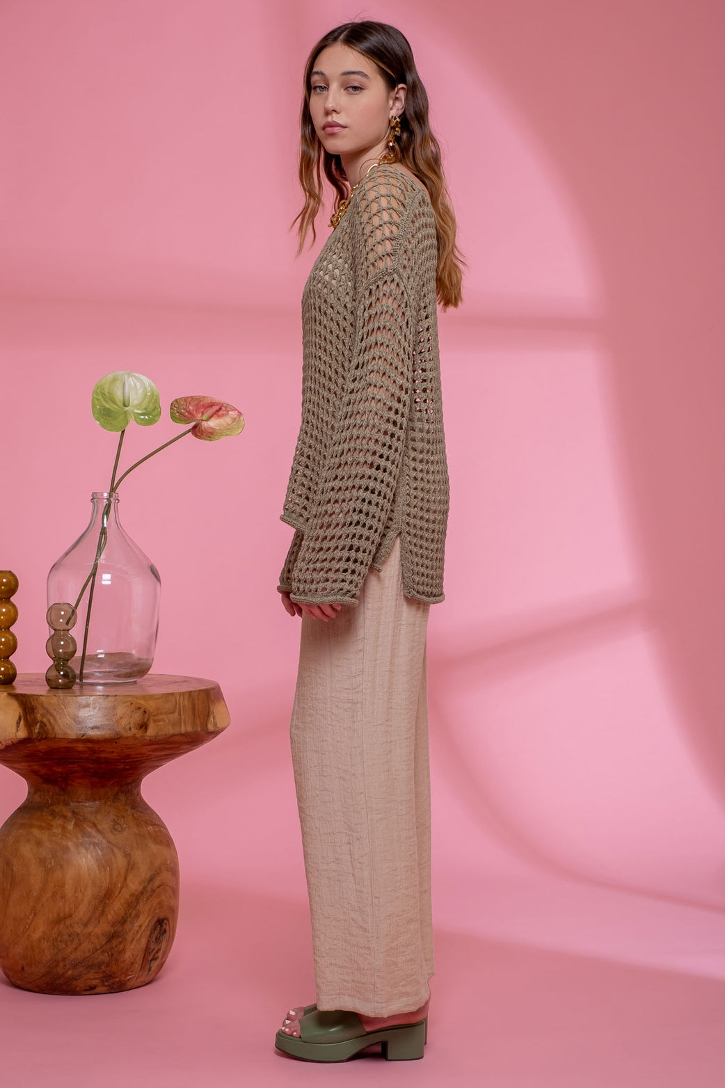 BLACK SCOOP NECK OPEN KNIT SWEATER