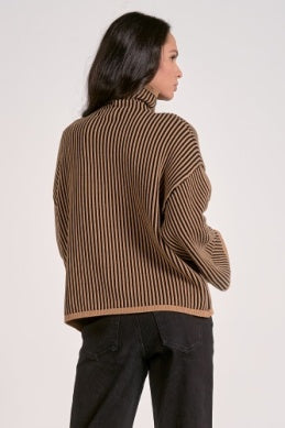 HEATHER GREY/WHITE STRIPE 1/4 ZIP SWEATER