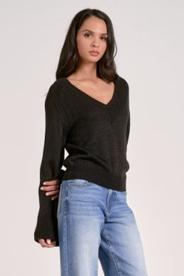 BLACK V-NECK SWEATER W/FLAIR SLV