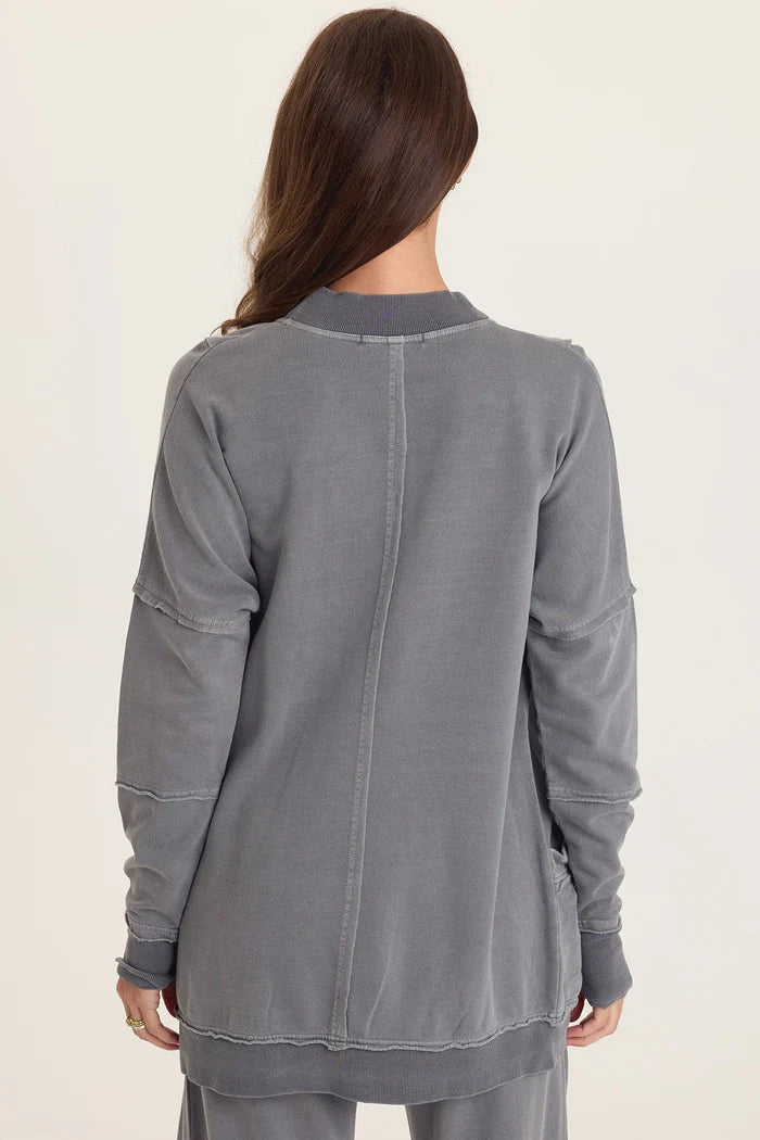 HEATHER GREY/WHITE STRIPE 3/4 ZIP SWEATER