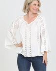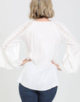 SWISS DOT LACE INSERTS FLARE BELL SLEEVE BLOUSE